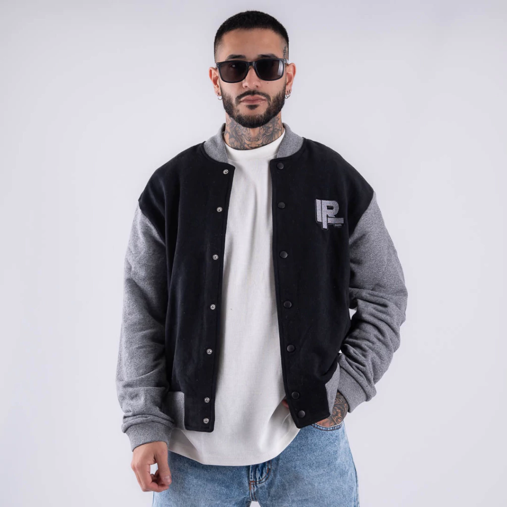 Añadí un toque de estilo universitario a tu look con la Bomber Mix en color negro. Esta campera tipo bomber, inspirada en el clásico estilo americano, presenta mangas en color gris y un cuerpo en elegante negro. Perfecta para combinar con jeans o joggers, es ideal para un look casual y moderno. ¡No te quedes sin la tuya!