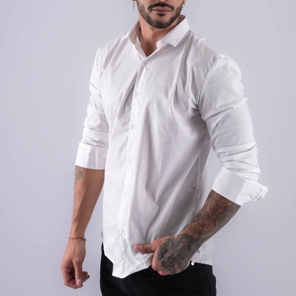 Eleva tu estilo con la sofisticación y comodidad de nuestra camisa "Will" en color blanco. Confeccionada en una mezcla de algodón con lycra elastizada, esta camisa ofrece un ajuste perfecto y una sensación suave y flexible al tacto. Su diseño elegante y versátil la convierte en una prenda esencial para cualquier guardarropa, ideal tanto para ocasiones formales como para un look casual y refinado. Perfecta para combinar con jeans o pantalones de vestir, la camisa "Will" te asegura un estilo impecable en todo momento